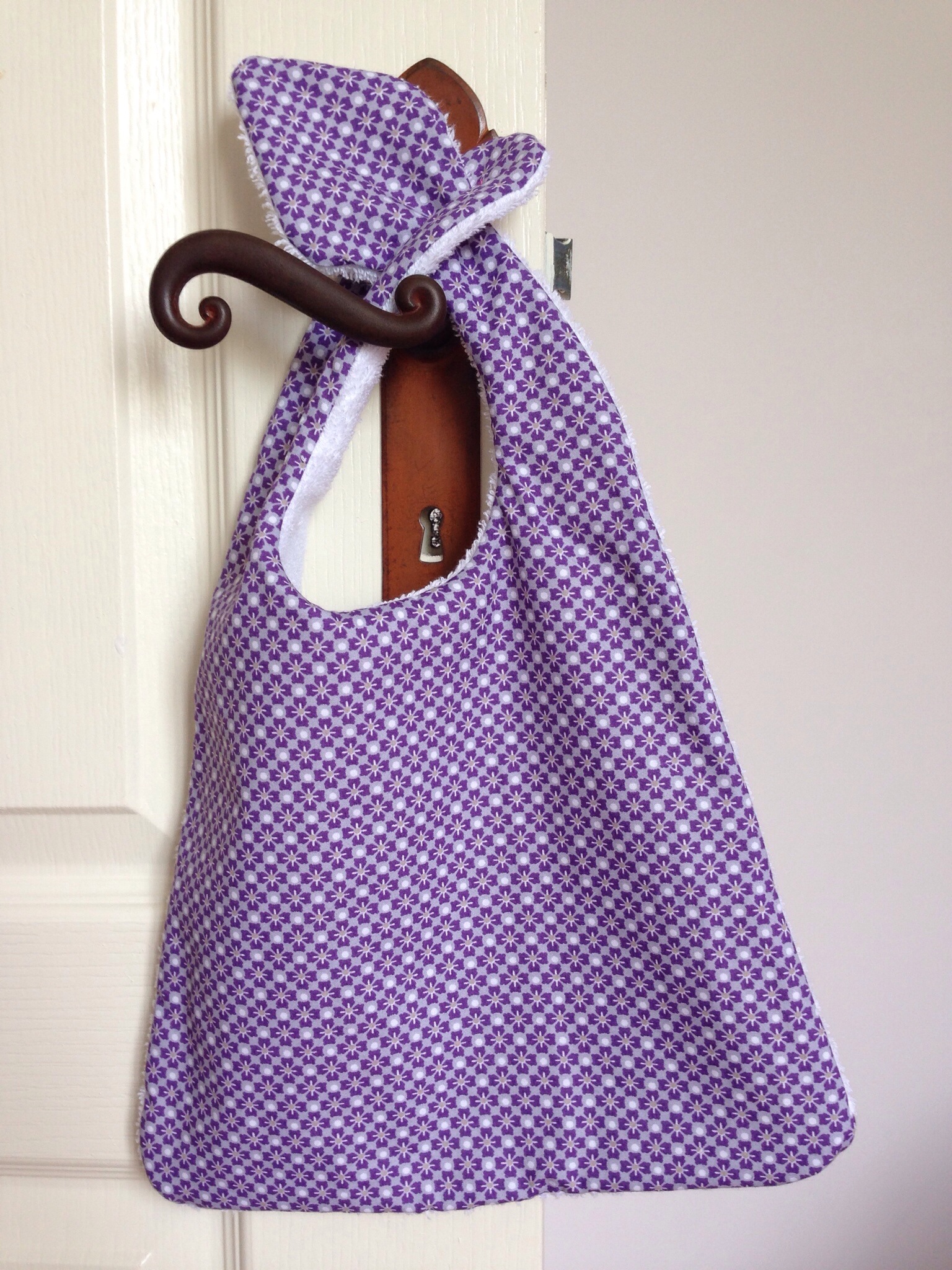 Et puis j’avais un petit cadeau à faire à une petite chipie qui, elle non plus, ne mange pas toujours très proprement ( bien que plus grande !! ),alors je lui ai fais également un joli bavoir avec du tissu de ma collection :