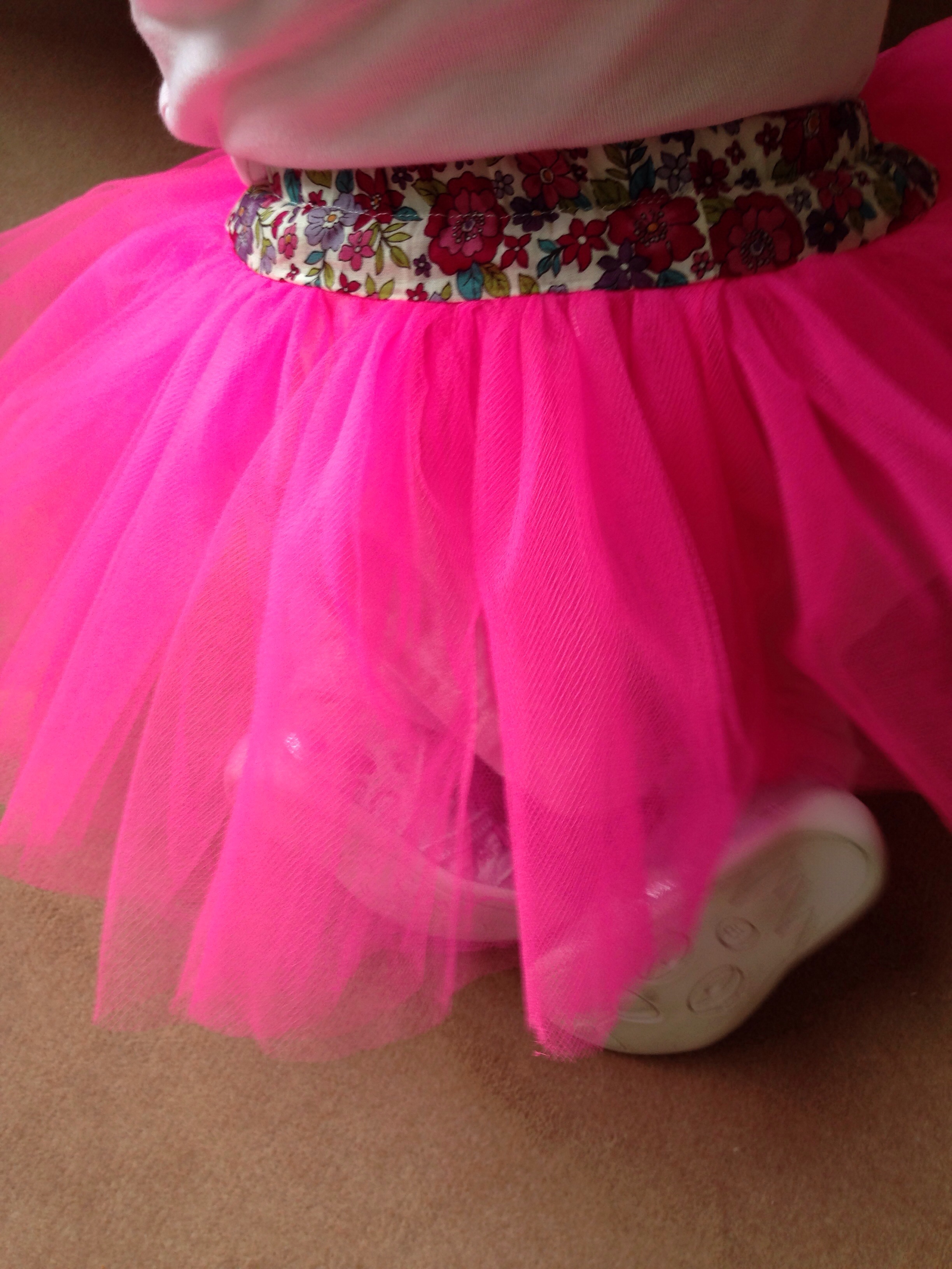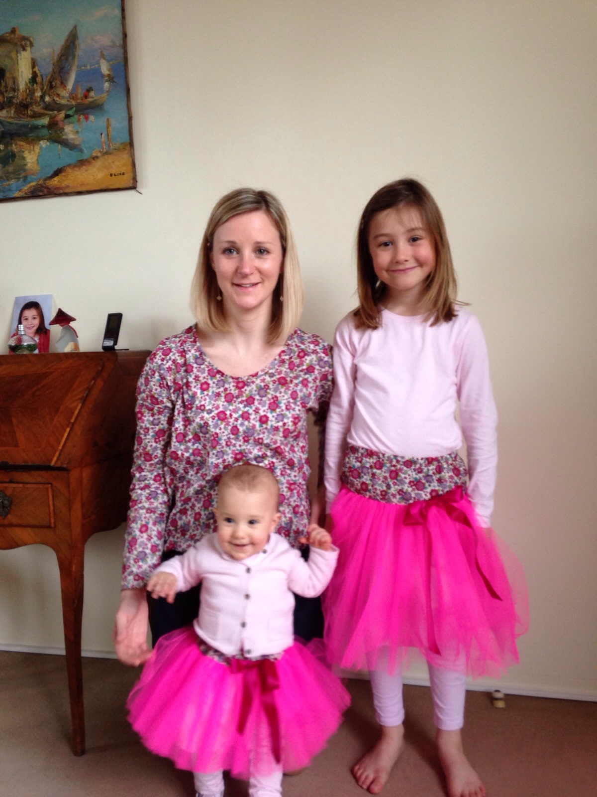 Pour moi, une robe « aime comme Marie » ( robe mon petit bazar ) et pour mes filles, une jupe en tulle ( jupe swan de papillon et mandarine ).