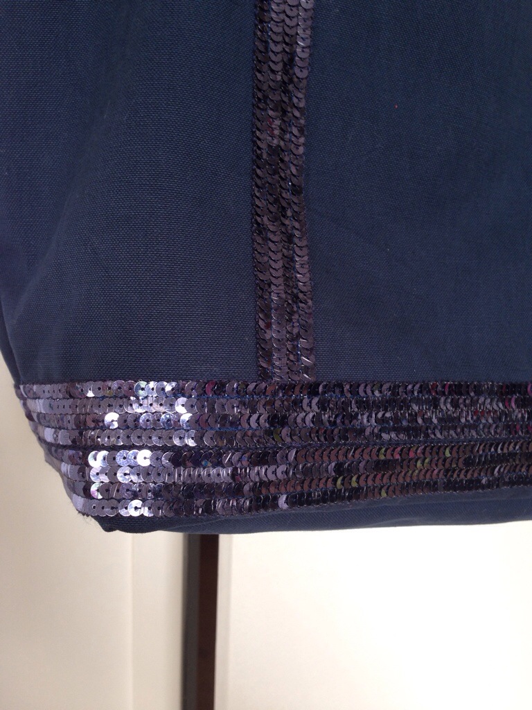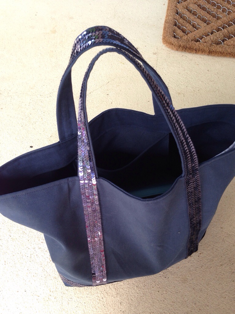 L’idée m’est venue en ressortant le mien mais je me suis rendue compte qu’il était vraiment trop abîmé ! Alors j’ai cherché sur le net un galon à paillettes : j’en ai trouvé plein mais aucun ne ressemblait à celui de mon sac !! Et puis je suis tombée sur un site belge avec le bon galon !!! Je voulais me refaire le même !!! Et voilà le résultat !!!