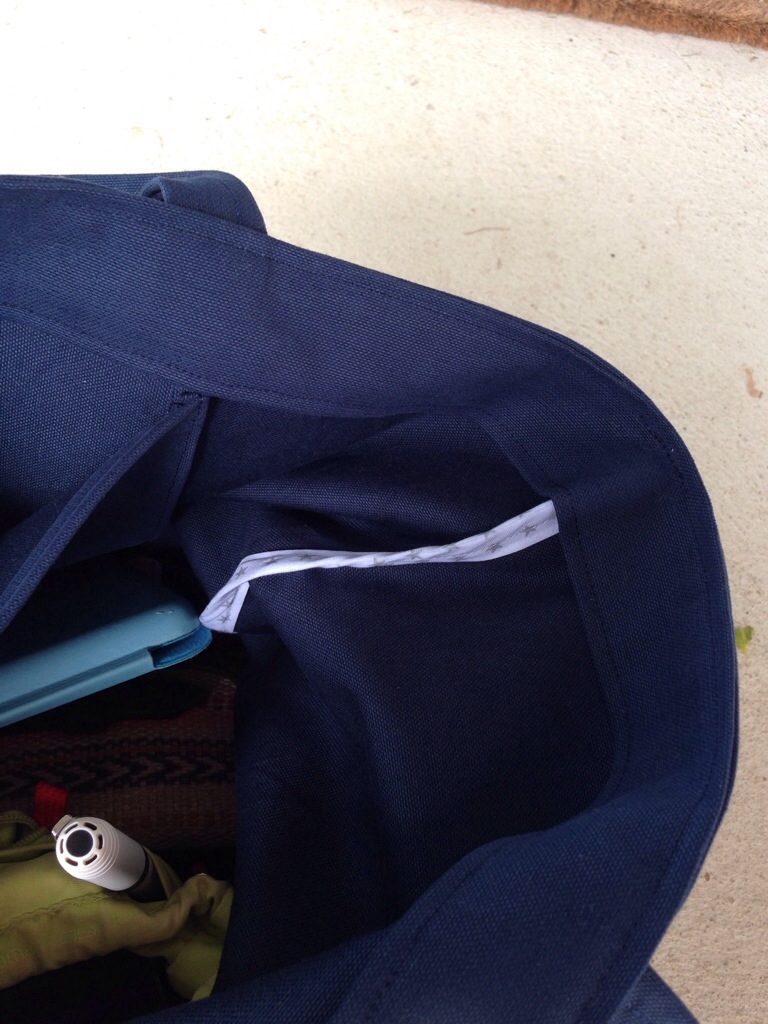 Les différences sont peu visibles !! Sur le bas 2 galons 4 rangs au lieu d’un galon 6 rangs et la pochette à l’intérieur n’a pas de fermeture éclair ( j’étais trop à la bourre !!) sinon c’est tout pareil !!! J’ai même mis un biais sur les coutures intérieures : c’est quand même plus propre !!