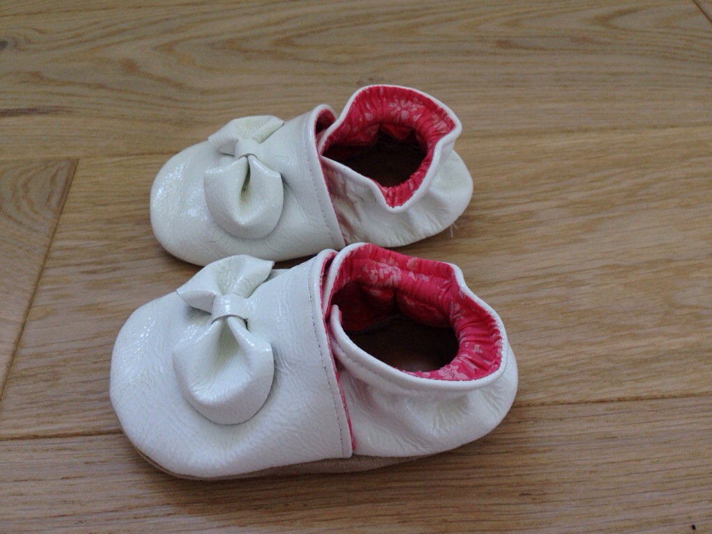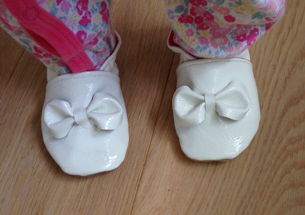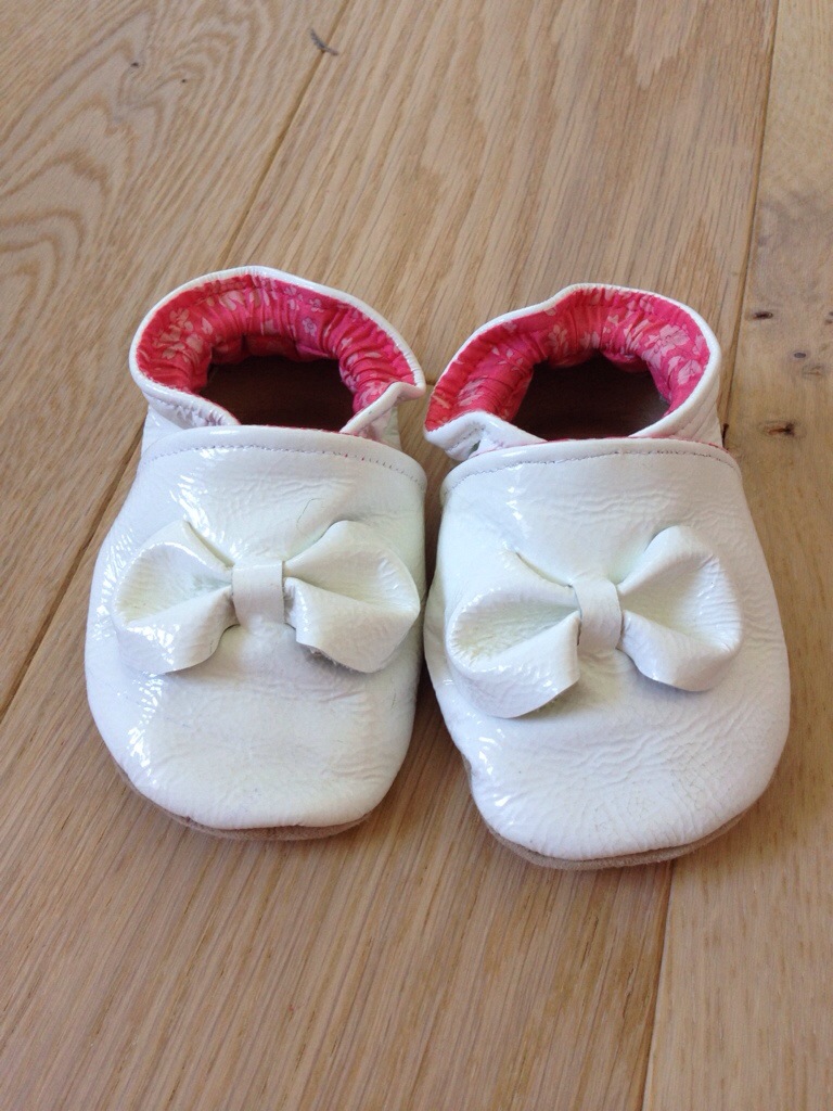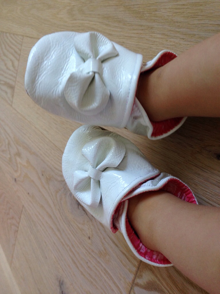 J’ai eu envie d’innover et de lui faire un petit nœud sur ses chaussons et avec ce cuir vernis, je trouve que ça rend vraiment bien !!!