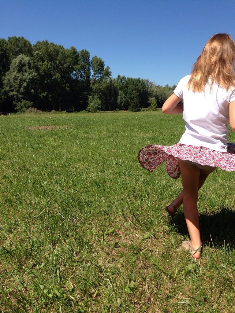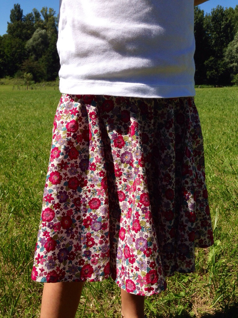 Cette fois-ci, j’ai fait quelque chose pour ma grande fille….. Une jupe qui tourne !!! Pendant nos vacances, une amie, qui fait aussi de la couture, avait fait cette fameuse jupe à sa fille et ça a forcément plu à la mienne !!! Alors je me suis exécutée !!