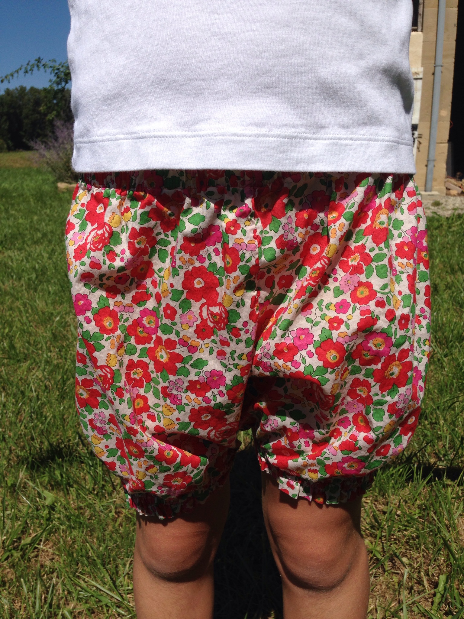 Mais voilà donc le bloomer de ma grande fille : sa petite sœur en ayant eu un … Il fallait donc en faire un pour la grande sœur et….. Elle n’a pas choisi de rose !!! Je suis très contente du rendu ( j’avais peur que ça fasse un peu bébé … Car elle a quand même 7 ans )