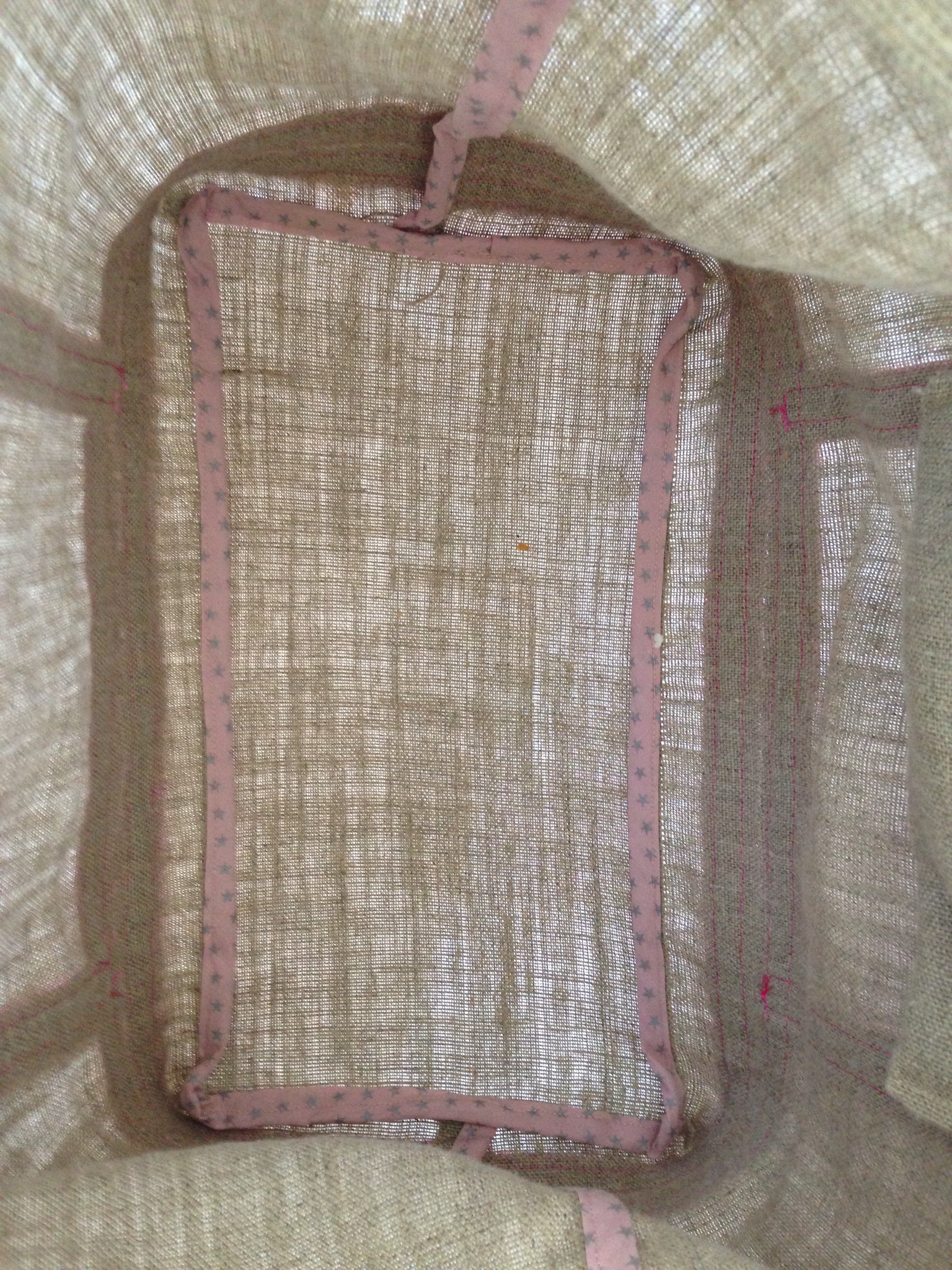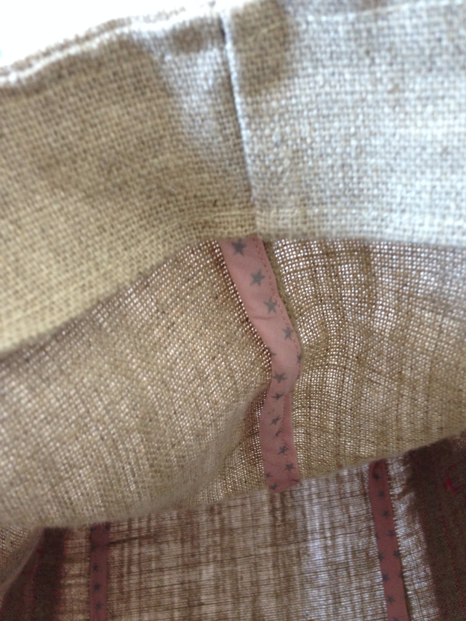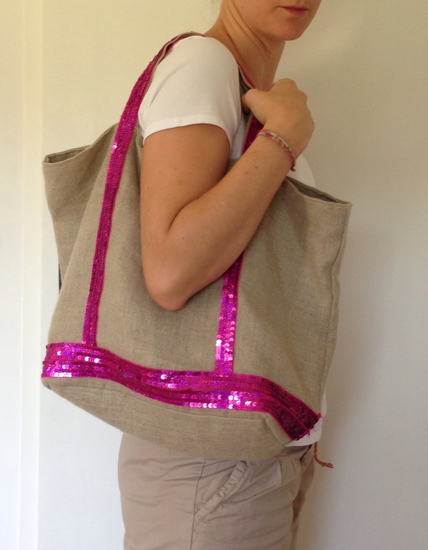 Et voilà….. aujourd’hui je vous présente un autre sac type Vanessa Bruno en lin beige et galon rose fuschia. Je l’ai fait un peu plus grand que l’original pour pouvoir mettre toutes les petites affaires de mon bébé quand nous sommes de sortie !! ( c’est quand même plus classe qu’un sac à langer !! )