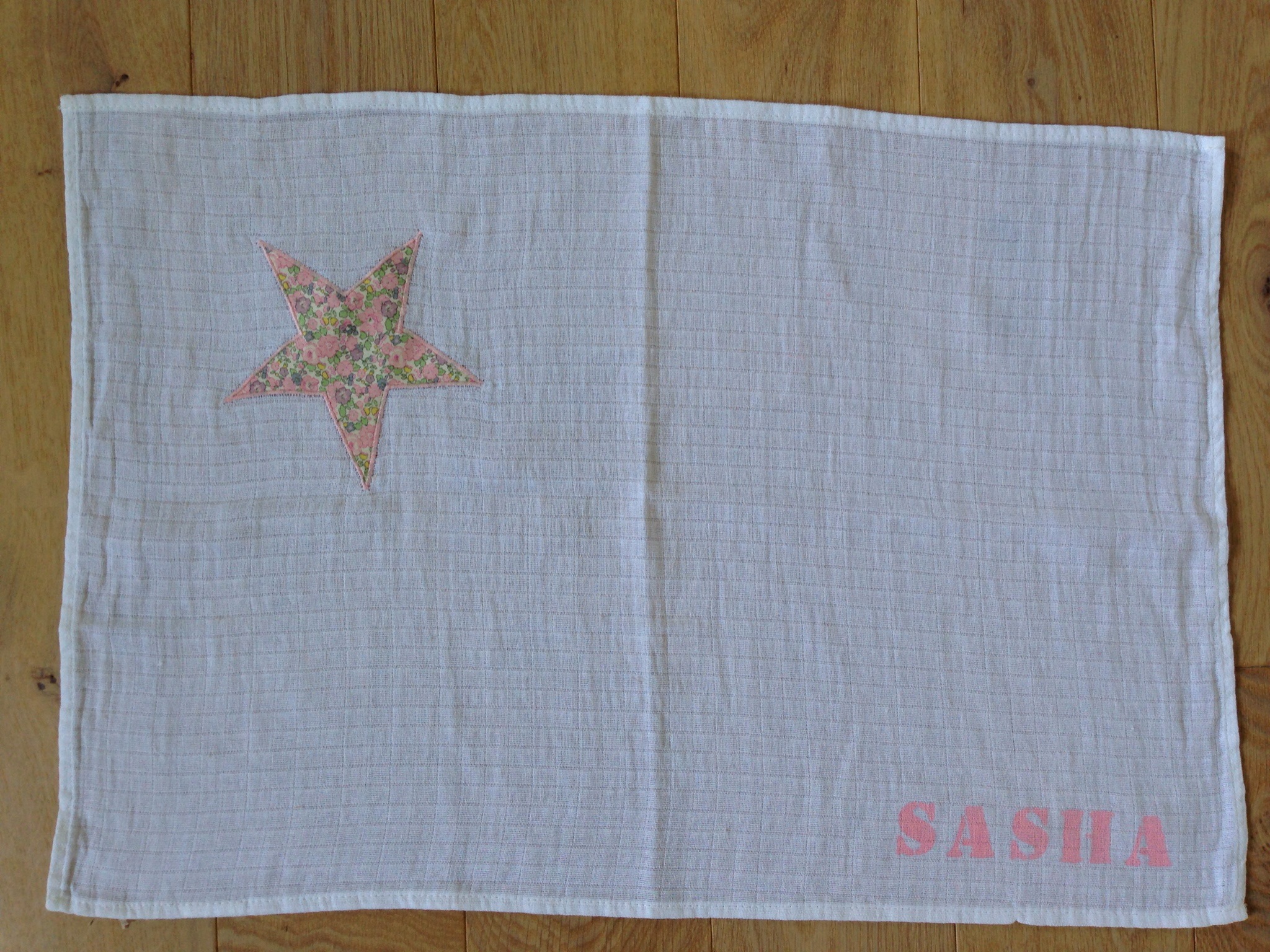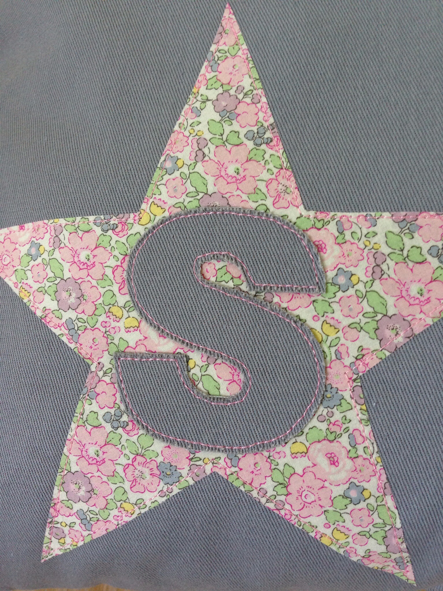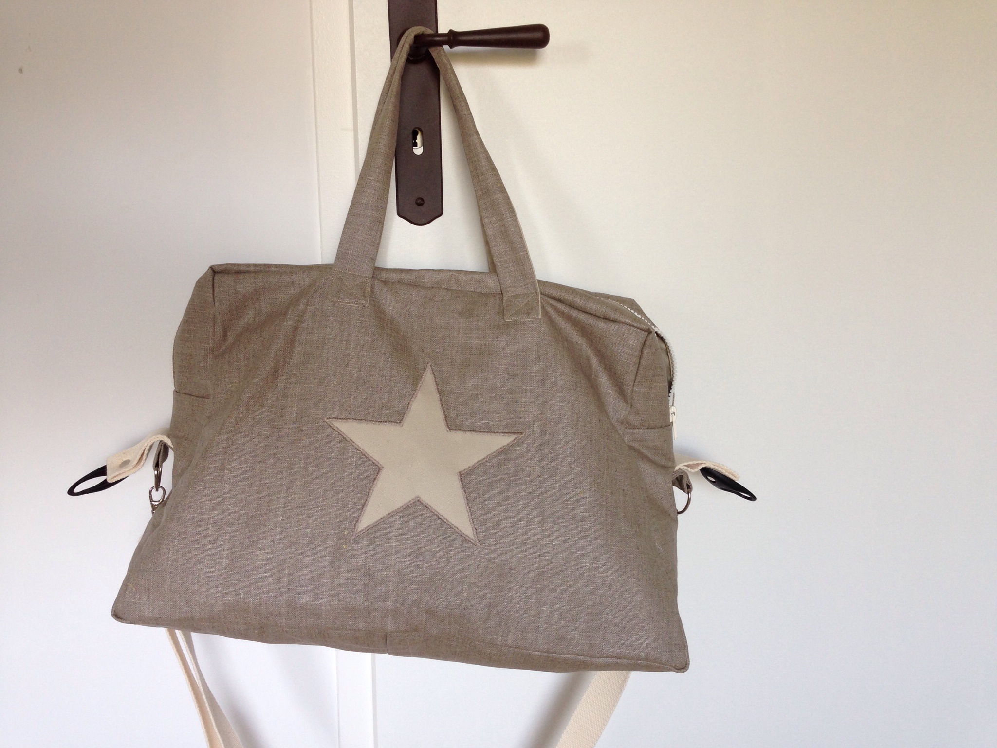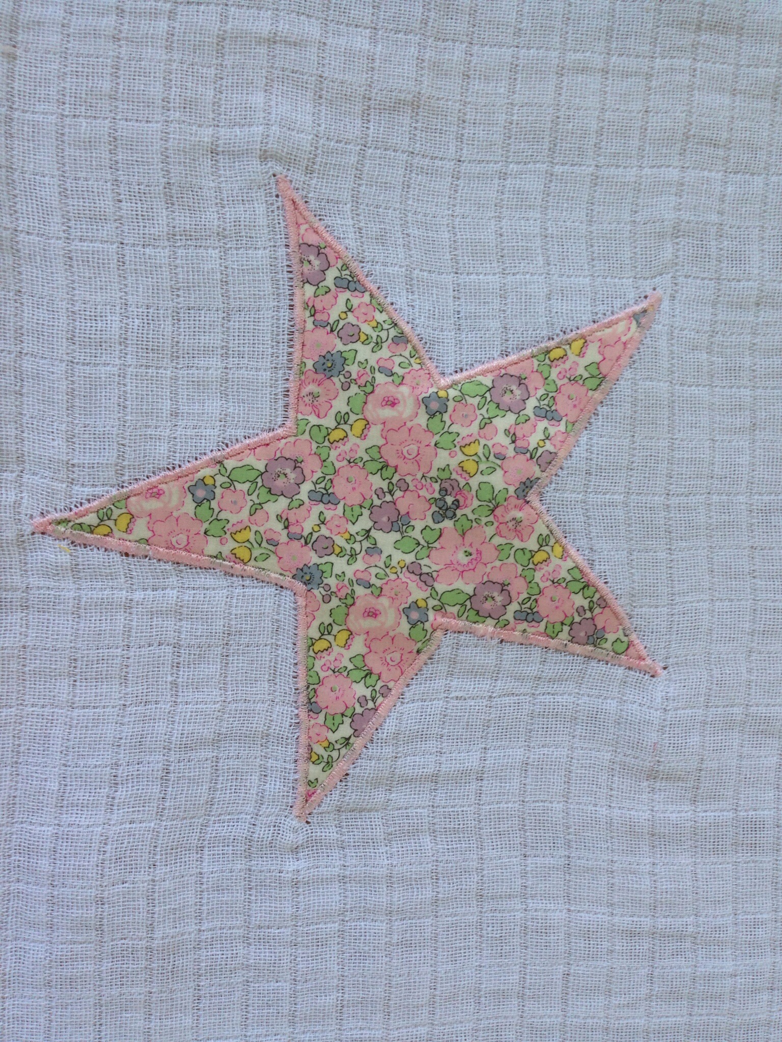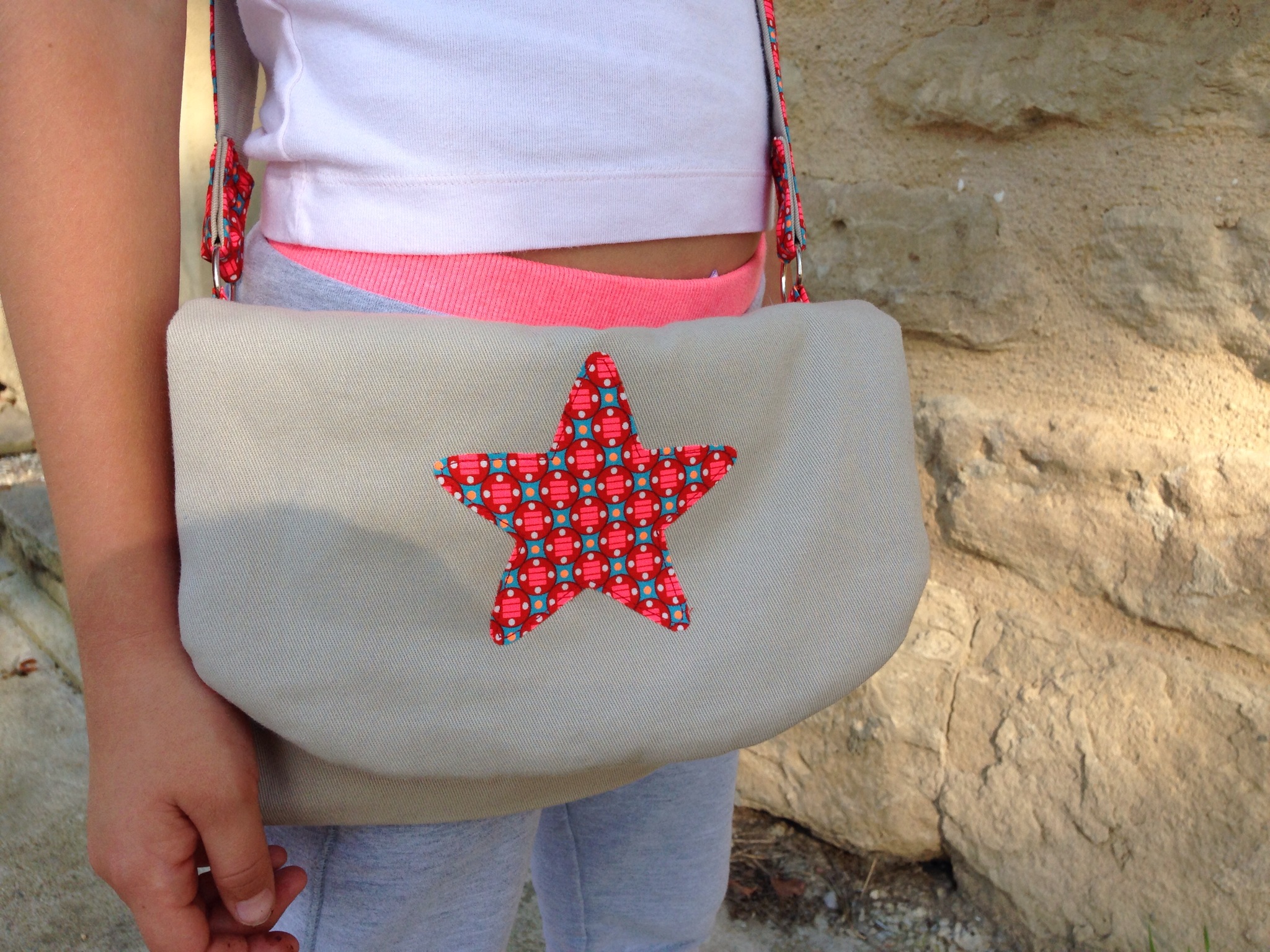 J’ai donc fait une poche extérieur ( au dos) et sur le devant il y avait normalement une poche soufflée mais je ne trouvais pas ça joli alors j’ai remplacé par un appliqué étoile ( beaucoup plus sobre à mon goût !)