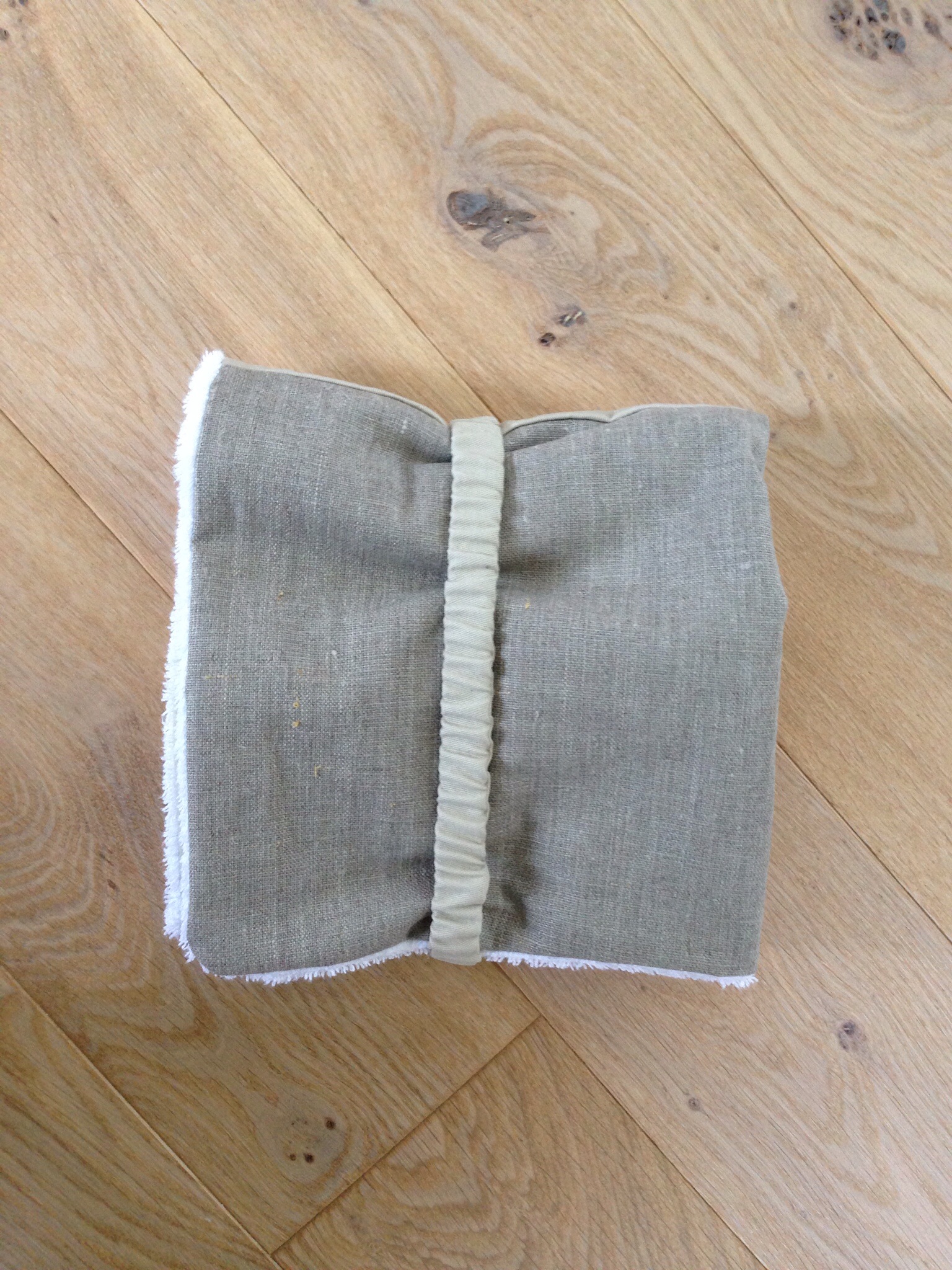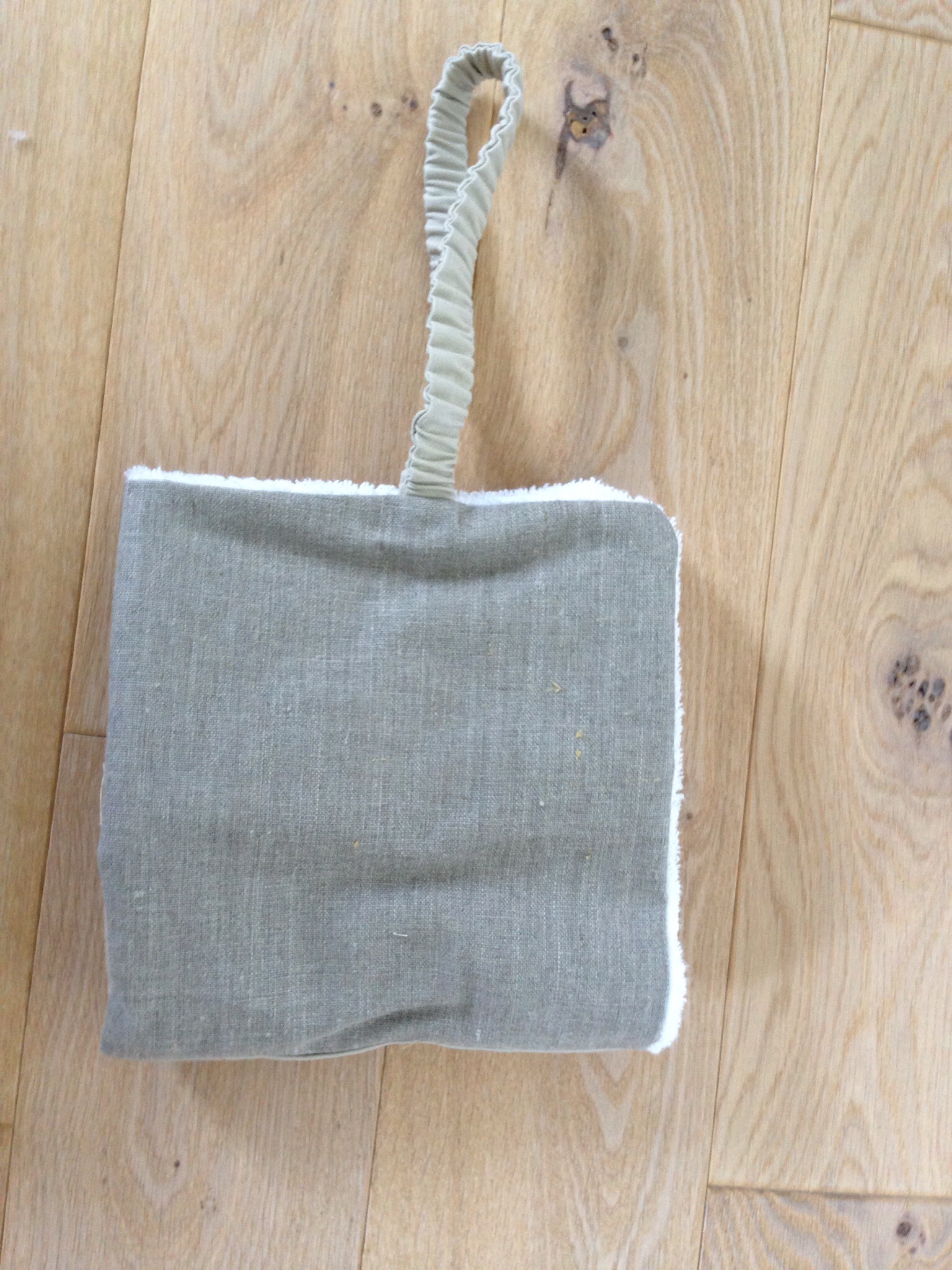 Un petit matelas à langer pour mettre dans le sac à langer : un côté tissu et un côté éponge et à l’intérieur un tissu imperméable. Et un lien élastique pour le fermer.