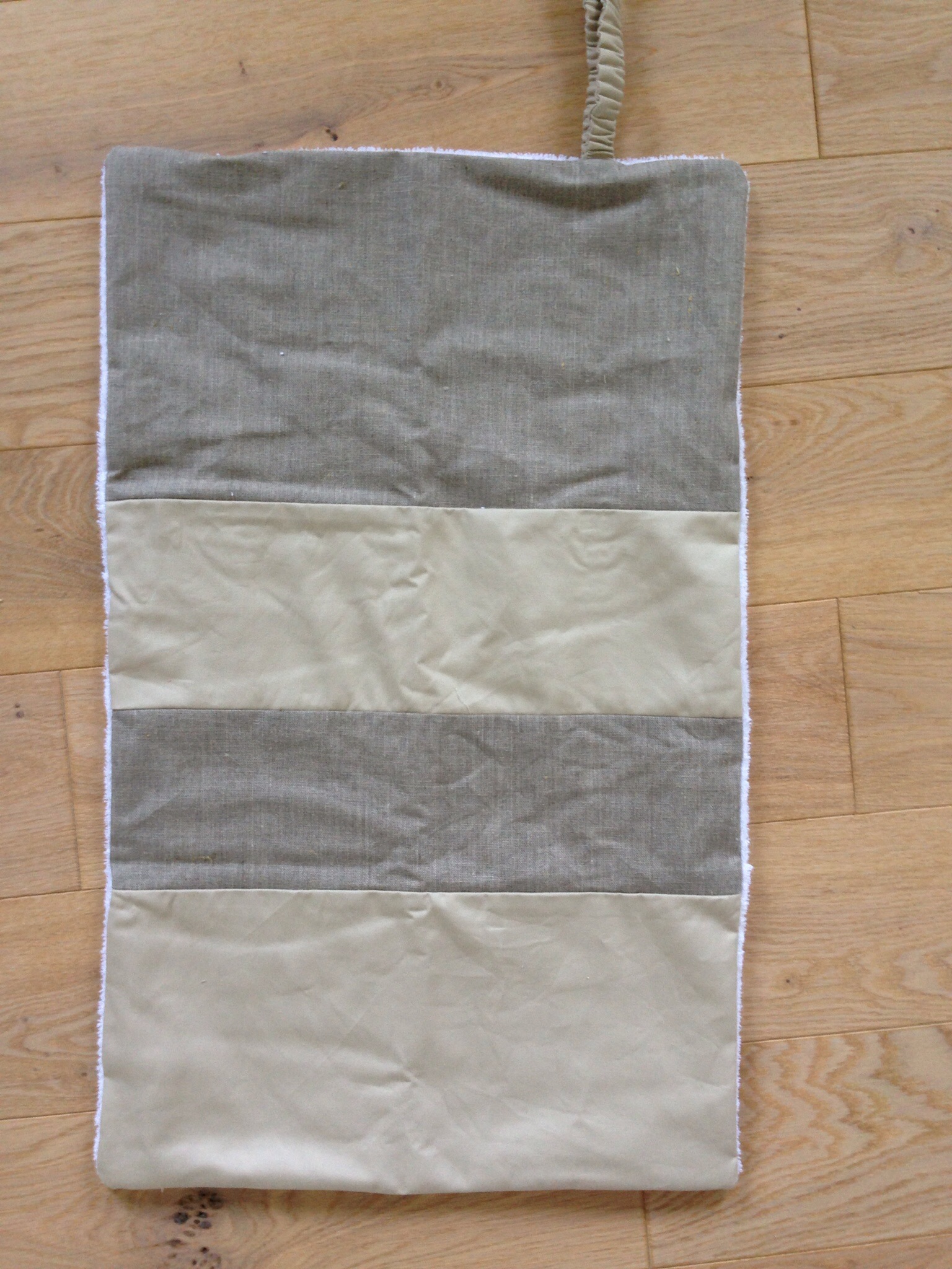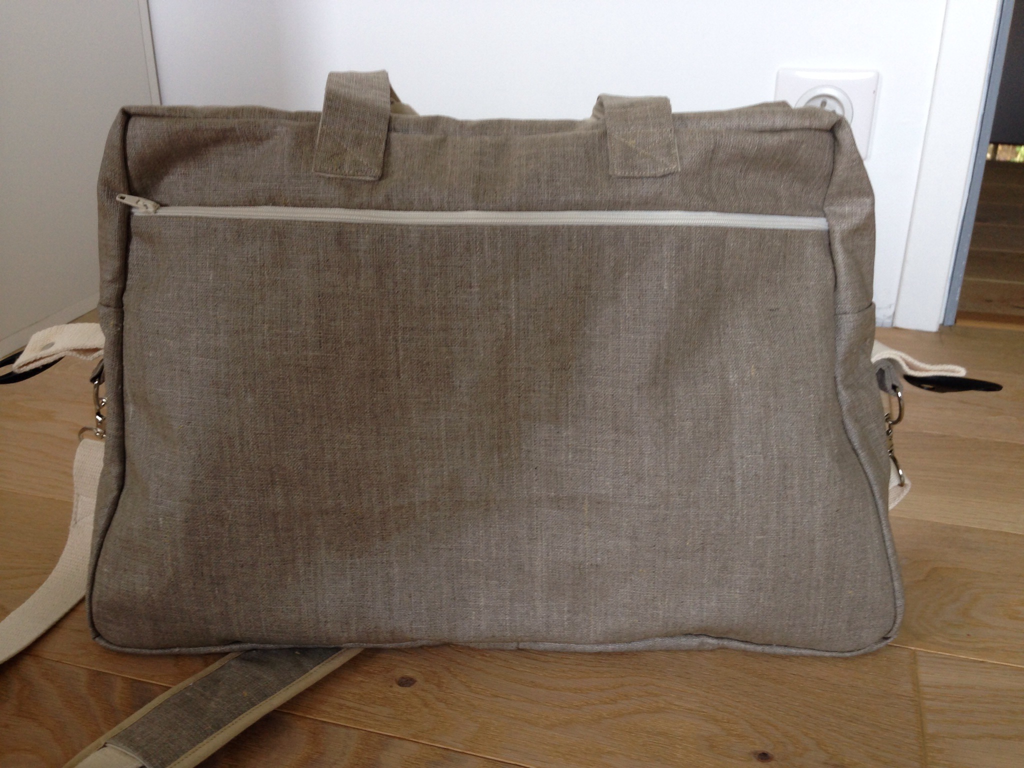Tout d’abord, un sac à langer ( patron des mères taupes ) qui j’ai mis du temps à faire car j’ai fait quelques modifications et puis toutes ces épaisseurs …. Vraiment galère !!! J’ai même réussi à trouver les attaches qui s’adaptent à la poussette !! Ça c’était la classe !!!